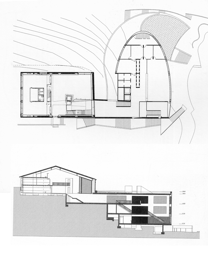 Con esta intención se construyó, al lado de la antigua masía, un nuevo edificio anexo, integrándolos ambos en un conjunto unificado diseñado por el prestigioso arquitecto Eduard Bru. La solución: levantar la nueva estructura por debajo del nivel de Can Miró, adaptándola a las irregularidades del terreno y dando como resultado un zócalo de materiales duros y grandes dimensiones. El trazado curvilíneo da al nuevo edificio una agilidad formal muy destacable, al tiempo que contrasta con la simplicidad de líneas de la masía y atrae la atención visual hacia esta.
