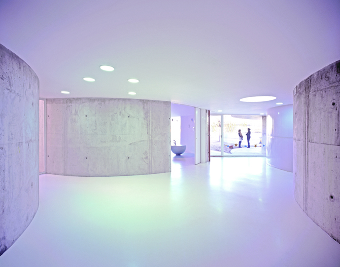 Este proyecto nos invitó a reflexionar sobre los primeros meses de vida de un bebé. La intuición que se aplica en la forma de habitar de los primitivos castros, cabañas, iglús o tiendas indias, soluciona con el mínimo material posible el máximo volumen, y se desarrolla habitualmente en círculos. La casa es la madre, y el confort del recogimiento “materno” es un recinto con una sola apertura al exterior que da “la luz”.