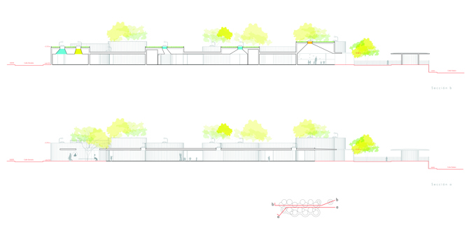 Tras concluir que la forma primitiva circular es la adecuada para este proyecto, se pensó en cómo se podía combinar y relacionar para adaptarse a las distintas situaciones del programa. Lo que en los asentamientos primitivos era el espacio urbano, aquí lo planteamos como el espacio de circulaciones e interrelación. El espacio central cubierto funciona del mismo modo, permitiendo que las distintas aperturas entre círculos iluminen el ámbito en forma secuencial. Esta espina central, sin forma definida, es la que agrupa las distintas aulas y servicios que hacen funcionar el centro, es el enlace entre piezas que, además, caracterizará la imagen final. El espacio dinámico central está contrapuesto al estático de las células circulares; esta sensación la reforzamos con materiales y texturas diferentes, de modo que los niños, tanto si salen al patio como si salen al paso central, entienden que aquello es un lugar “sin protección”.