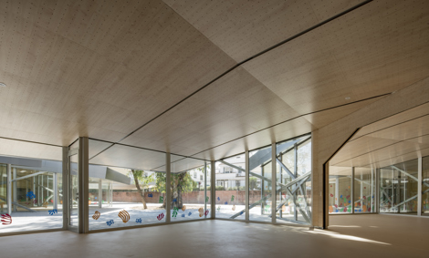 Todo el conjunto se organiza alrededor de un gran eucalipto preexistente, elemento que contribuye a la identidad de los espacios libres del colegio. El árbol sirve, por tanto, como referencia espacial y de orden geométrico para la ordenación de las aulas: todas se miran entre sí y ponen en valor el espacio libre de juegos, al tiempo que acentúan el espacio mismo como centro de educación complementaria al aire libre. La coexistencia de aulas, comunidad educativa y espacio libre es el objetivo de esta obra.