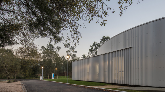 La proximidad del polígono de A Veigadaña nos llevó a explorar el lenguaje y materiales de las naves industriales próximas para proponer una pieza que fuese capaz de dialogar con lo existente y, simultáneamente, señalarse como un elemento singular y equipamiento de servicio comunitario. Por esto, por el reducido presupuesto disponible y atendiendo al corto plazo de ejecución disponible, se optó por una estructura metálica atornillada sobre la que se disponen perfiles metálicos grecados y una cubierta deck ligera que conforman la imagen de interior y exterior de cubiertas y pérgolas al quedar vistos.