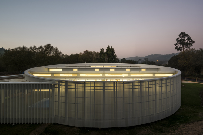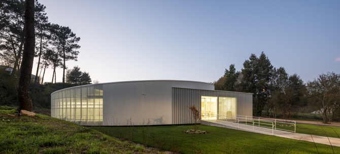 El proyecto parte de la aproximación a una parcela compleja en el polígono de A Veigadaña por su irregular geometría y su proximidad al cauce del riachuelo canalizado con el que linda. La incomodidad generada por la necesidad de colmatar la edificabilidad de la parcela con esa geometría anómala lleva a imponer una geometría más pura, un círculo, en el que se inscriben todas las funciones de la escuela y dos paralelepípedos que regulan los accesos al exterior.