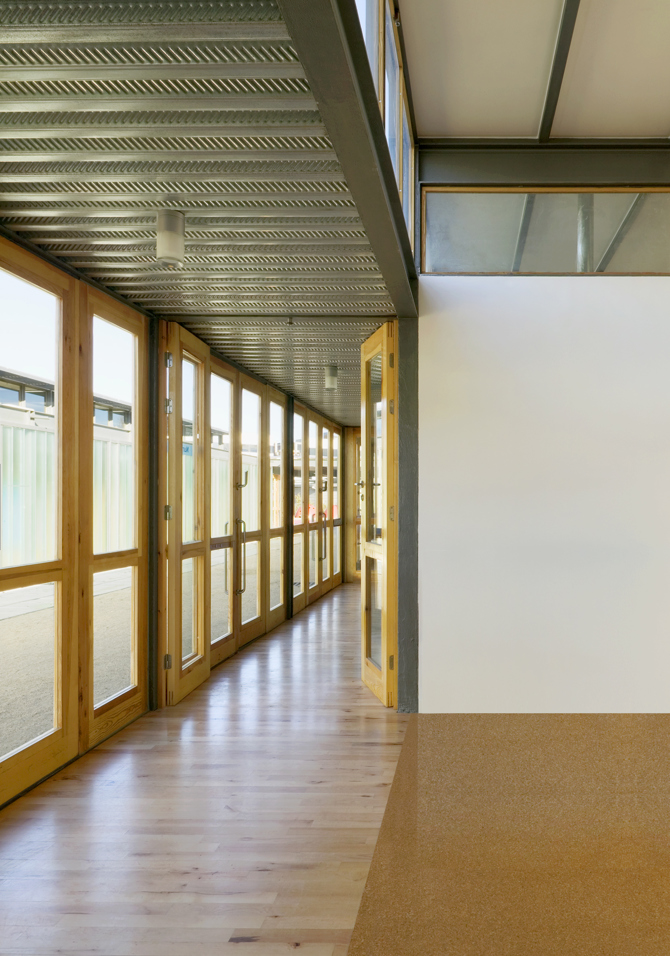 La buena orientación norte-sur, la entrada uniforme y abundante de luz protegida del sol, la altura óptima de las aulas para un volumen amplio de aire y oxígeno, la ventilación cruzada, las vistas al cielo, la prolongación del pavimento de corcho con la tierra del patio, la proporción cuadrada y de equilibradas dimensiones, son aspectos no solo de higiene o confort, sino sobre todo cualidades espaciales que penetran en lo más profundo del ser, y que se relacionan íntimamente con el valor y el contacto del medio natural.