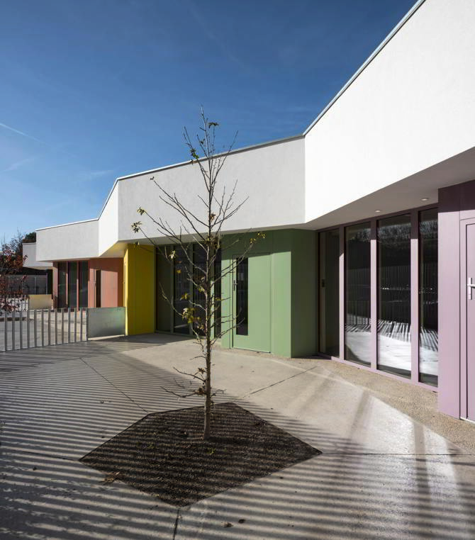 La obra consiste en la construcción de una escuela infantil que se realizó teniendo en cuenta las necesidades específicas de control y seguridad, así como también de juego y de diálogo entre los espacios interiores y exteriores. Al afrontar el diseño de un edificio de atención infantil, las primeras nociones con las que involuntariamente se trabaja son aquellas relacionadas con la seguridad, el control o la organización, así como las vinculadas directamente con el universo infantil del juego. Sin duda es algo que resulta lógico. Sin embargo, en ciertas ocasiones y por diferentes motivos, quedan al margen otros aspectos tan importantes como los anteriores. Cabe anotar que, casi en la mayoría de los casos, la escuela infantil es el primer espacio público que cualquier niño o niña visita. Es más, se trata del primer lugar, diferente del hogar, que cualquiera llega a habitar. Por ello resulta importante atender al carácter y la condición que el edificio y sus espacios interiores adquieren desde su dimensión próxima, familiar y casi doméstica.
