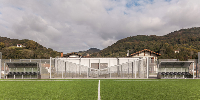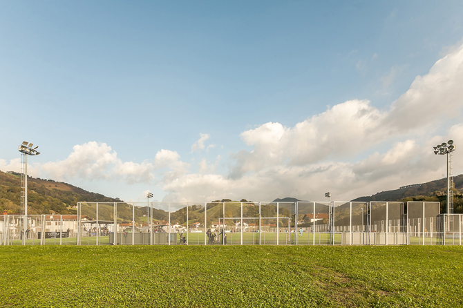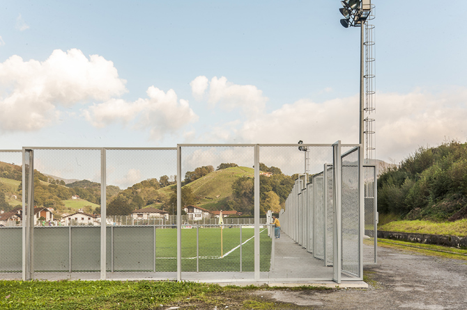 El proyecto plantea un espacio deportivo en Bera, Navarra, como atractor social centrípeto para la población local. Se diseña un espacio perimetral público que envuelve la actividad deportiva compactada en el centro de la escena. El proyecto, de resolución lógica, maximiza las responsabilidades de cada decisión proyectual, generando plusvalías en cada decisión de diseño a la vez que convierte el juego en espectáculo coreografiado y el acercamiento perimetral en platea improvisada.