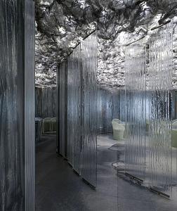 Cómo esta experiencia espacial puede darse en un interior sin nuestros “apoyos naturales”. Para ello se prepara un mundo interior: una gran nube. En ella penetramos, y techo, paredes, sillas y mesas nos hacen vivir esta ilusión en un juego de transparencias que te lleva a realizar un recorrido, donde al mismo tiempo que descubres y sientes los espacios, vas degustando mezclas exquisitas de sabores.