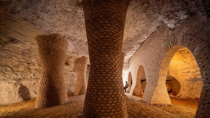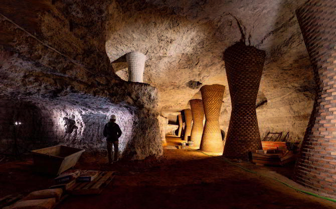 Frente a soluciones habituales como el hormigón gunitado, que altera el equilibrio hídrico del entorno, o rellenos, ineficientes sin costosos materiales expansivos, se propone reinterpretar técnicas tradicionales encontradas en Tomelloso mediante fábricas de ladrillo y morteros de cal: hay más de 2. 000 bodegas-cueva gracias a la configuración geológica excepcional del terreno para su excavación, con capas de arena limosa bajo una costra carbonatada que configura el techo.