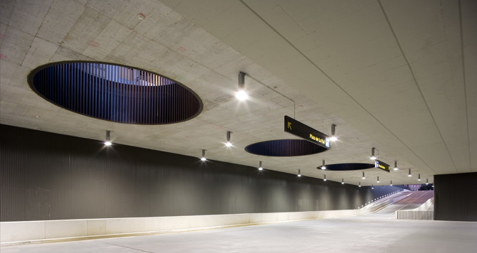 Debido precisamente a su cercanía a la Ciudadela, el proyecto contempla la recuperación arqueológica de parte de sus restos mediante la consolidación de las ruinas del revellín de Santa Lucía y sus fosos circundantes, así como la reconstrucción de la superficie verde que en su momento la rodeó. El único elemento visible exteriormente es la marquesina de acceso, un cuerpo acristalado de planta única y 100 m de longitud.