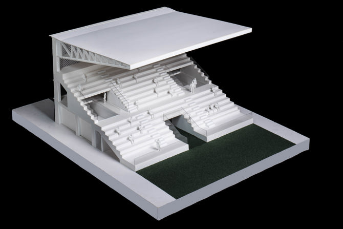 El estadio se encuentra en un punto de transición entre un entorno natural y un entorno urbano, y debe reafirmar su condición y su escala pública. Al final, una caja blanca plantea una cuestión de arquitectura: la intensificación de la condición urbana como respuesta al entorno.