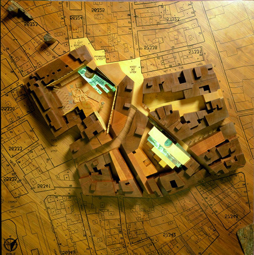 La plaza del Árbol de Valencia (más bien un cruce de calles) se encuentra situada en el centro de la antigua ciudad árabe, con edificios en ruina o semirruina, sin gran valor ni histórico ni arquitectónico. Intentar hacer una plaza en este entorno tan denso y caótico me pareció inútil. Sin embargo, la lógica aspiración de conseguir un espacio exterior (público) se consiguió a 14 m sobre el nivel de la calle creando una gran plaza elevada que nos descubre un nuevo paisaje y una nueva forma de habitar la vieja ciudad. Debajo, a todas las viviendas se accede desde la calle o desde su prolongación por medio de corredores interiores y pasarelas suspendidas.