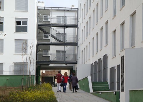 - Una gradación de espacios públicos/privados y límites entre lo exterior y lo interior que se traducen en calles interiores de acceso a las viviendas, galerías y corredores, jardines privados y parque público, soportal bajo el bloque “D” como comunicación visual entre la calle y el parque, pasajes de comunicación entre el exterior de la manzana y el interior; multiplicidad de relaciones espaciales, de dominios públicos/privados, en definitiva, una riqueza espacial y arquitectónica que se transmite a la ciudad.