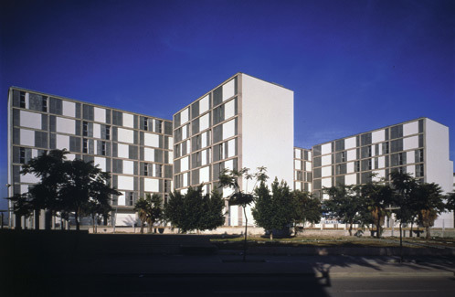 Arquitectura de silencio; entorno de melodía y un solo protagonista, el lugar. Poner en relación las heterogeneidades del lugar ha sido el intento de este proyecto. No endurecen ni fortalecen las preexistencias. Así, se ha pretendido construir una imagen de una serie de volúmenes permeables que nos conduzcan a una plaza-parque, en la que entran en contacto las nuevas viviendas y las antiguas torres de diez plantas.