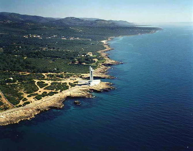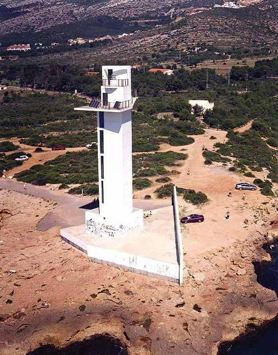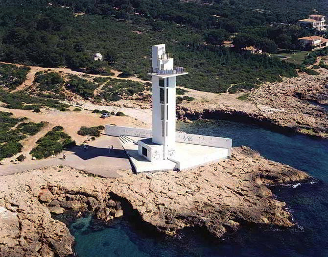 Este faro, construido bajo el Plan de Señales Marítimas 1985/89, sirve de señalización luminosa para navegantes. Se ha convertido en un hito visible desde cualquier punto de la costa y, además, en el acceso al parque natural desde el sur. Un enclave natural y estratégico donde el blanco y la geometría destacan sobre la vegetación, el mar y las montañas que delimitan la zona. Un faro hermético en su volumen, pero amable con las personas y el entorno en su intervención de la parte inferior. Junto con el faro de Nules, de Blanca Lleó, son los únicos diseñados por mujeres en España.