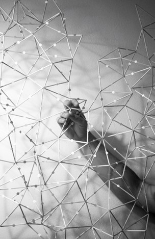 El techo está configurado mediante tubos de vidrio reutilizados procedentes de la industria química y farmacéutica que, unidos entre sí mediante hilo, forman una malla tridimensional y permiten la construcción y delimitación de un espacio inferior de 54 m2.