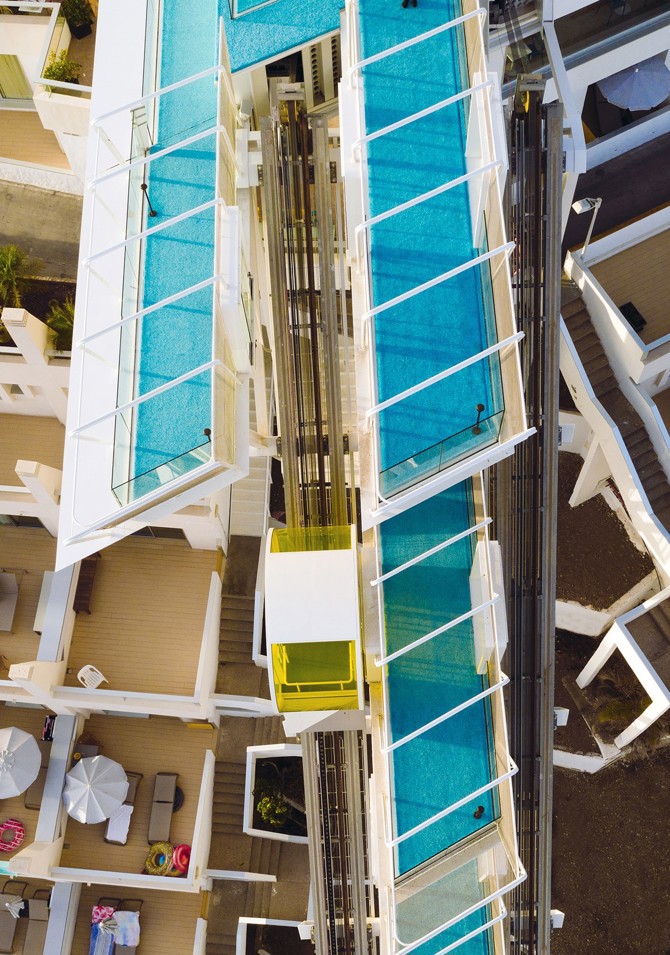 Y el resultado último es una alfombra mágica, de color azul, que consigue una experiencia adimensional, fusión de cielo y suelo, de láminas de agua y océano. Que vuela en la cornisa de Puerto Rico y se superpone al hotel existente con descaro. En la rehabilitación energética está el futuro sostenible de nuestras edificios, pueblos y ciudades. También de nuestras industrias, y la del turismo es un claro ejemplo.