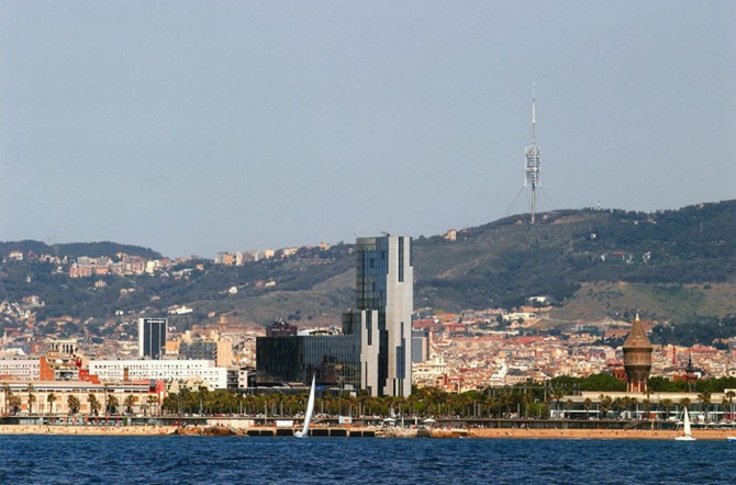 La sede de Gas Natural es una torre de 22 pisos y 86 m de altura. EMBT creó este proyecto para la empresa en el barrio de la Barceloneta, muy cerca del Paseo Marítimo. El proyecto requería diseñar una torre única capaz de enriquecer el skyline de la ciudad y respetar también las pequeñas dimensiones de los edificios que conforman el distrito de la Barceloneta, una zona donde las casas de las familias de pescadores conviven con bloques de apartamentos de cinco pisos.