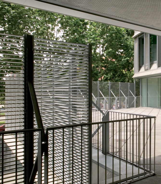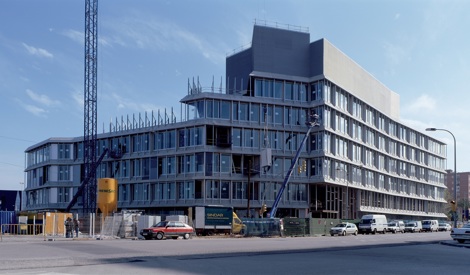 El edificio alto tenía una fachada formada por una hoja interior vidriada y por otra exterior metálica que hacía de protector solar. No siempre estas dos pieles eran paralelas y cercanas, la exterior estaba atenta a la lógica urbana y la interior a la del propio edificio.