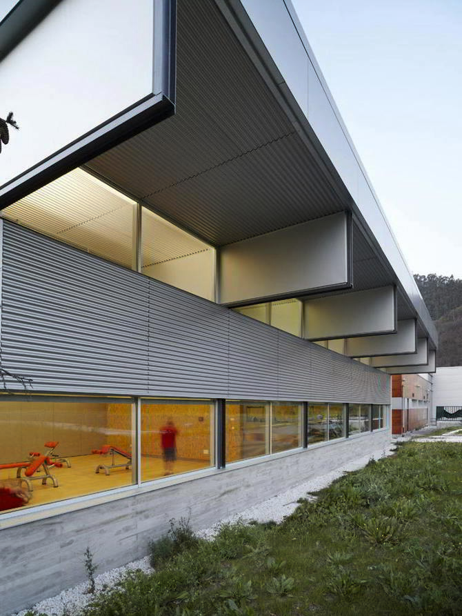 A pesar del limitado presupuesto, el proyecto de este gimnasio en Mieres buscar dar qué pensar al que hace deporte mientras lo hace. Este proyecto no tiene apenas servidumbres funcionales ya que recepción, calderas, servicios o duchas se encuentran en un edificio anterior. Por tanto, se trata de una pieza casi exenta que unimos por un pequeño istmo a un edificio público ya existente.