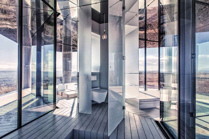 Iniciada por Guardian Glass, Glass House está diseñada por OFIS arhitekti en colaboración con los ingenieros estructurales de AKT ll y la ingeniería climática de Transsolar, para crear un espacio vital confortable con bajo consumo de energía en el desierto. Glass House es un prototipo de investigación para un retiro confortable aunque elemental en una tensa yuxtaposición con el duro entorno circundante.