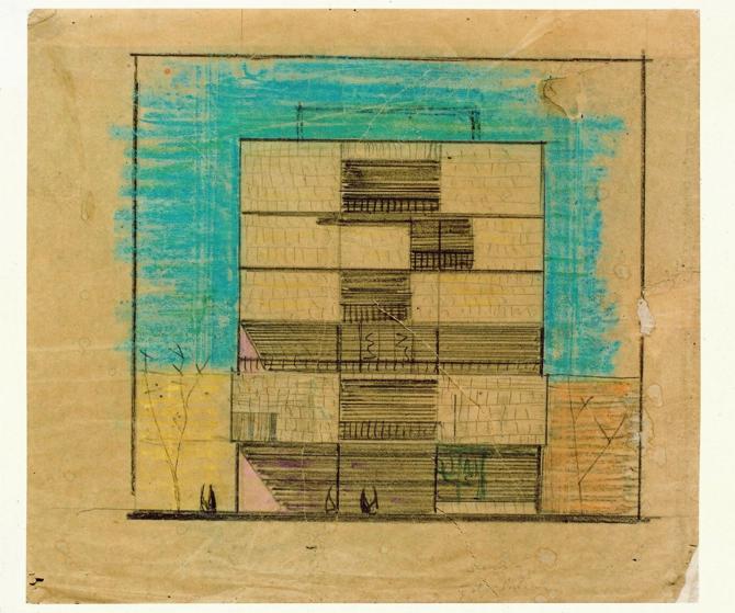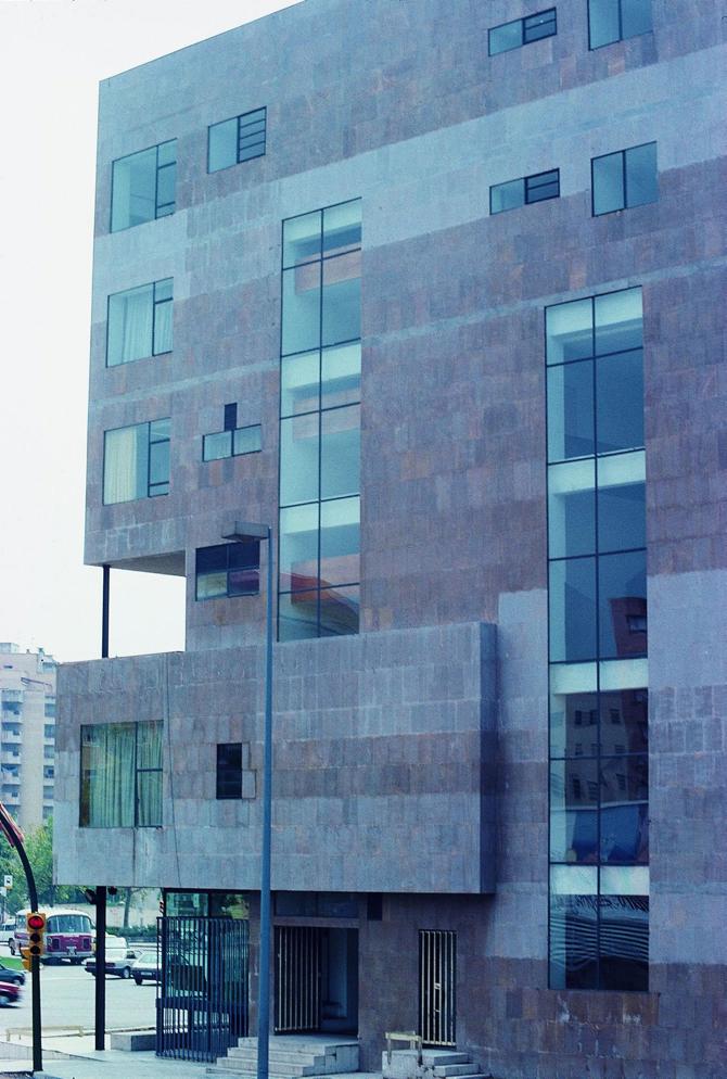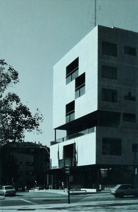 Se utilizan las diferencias del programa arquitectónicamente. Edificio pulcro y muy definido, sobre módulo de 6 x 6 m. La pulcritud se entiende muy unida a la representatividad y a la Administración. Todo él de mármol labrado y pulido. Se intentó, sin éxito, construir el mismo proyecto en un emplazamiento más lógico.