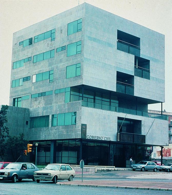 Edificio representativo del poder central, según división de España en provincias, anterior a las autonomías. Programa de necesidades mixto: representación oficial, administración y viviendas. Se descompone en bloques según su uso y se compone según edificio. Parte representativa con ejes obligados. Parte de viviendas con informalismo, rompiendo ejes.