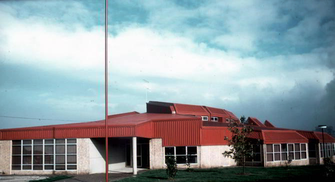 Buscando la mejor orientación para las aulas, analizando las condiciones que ofrece el lugar, queriendo diferenciar e independizar los servicios y, a la vez, conseguir un edificio con gran unidad, se proyectó un hall o vestíbulo que actúa como conexión, corredor de aulas y recreo cubierto. De esta manera, se llegó a la forma semicircular definida en los planos, desarrollada fundamentalmente en una planta y con un amplio espacio central de doble altura e iluminación cenital. La cubierta, aun diferenciando las distintas zonas, sirve también para acentuar el carácter unitario que se quiso dar al edificio.