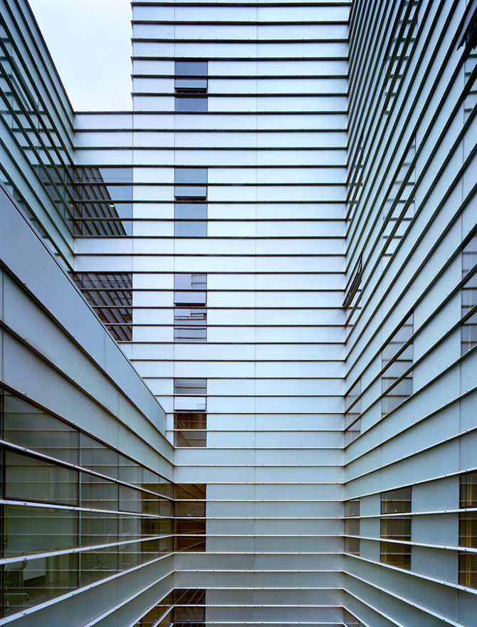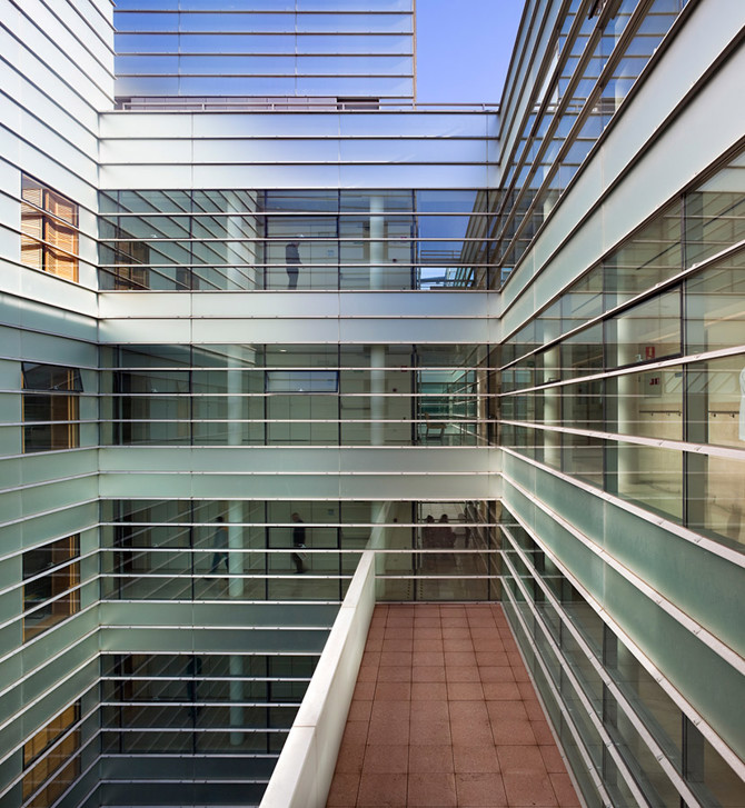 Pues es desde la planta, desde la disposición de la misma, como se organiza el complejo programa de un hospital que tiene como módulo constructivo de base la unidad de enfermería. De ahí que sea la concatenación de unidades de enfermería la que da origen a los patios que pueden y deben ser considerados como elementos característicos de un proyecto como este, en el que la atmósfera confortable para los pacientes ha sido una de las metas perseguidas por el arquitecto. A la misma también contribuyen definitivamente los materiales –dentro y fuera del edificio–, lo que explica la elección de los mismos y el deseo de que se entiendan como próximos a una cultura tecnológica, a la que no es ajeno un hospital. La claridad, limpieza y luminosidad, atributos propios de la higiene que reclama la ciencia médica, lo son también de esta arquitectura a la que nos gustaría poder calificar como racional y optimista”.