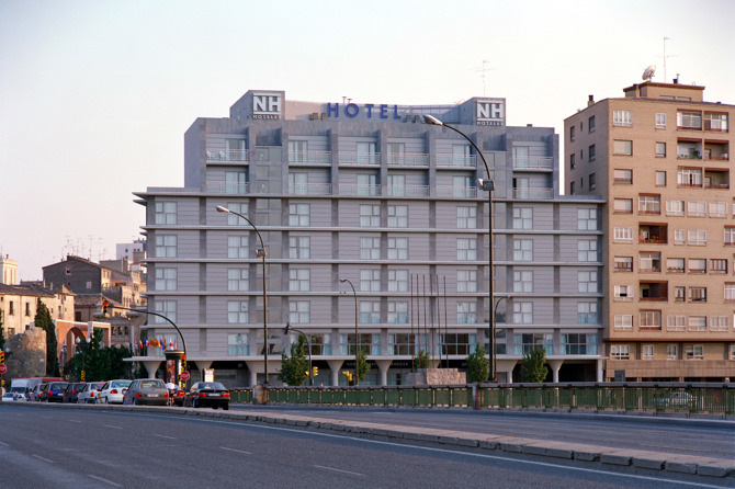 El hotel se ha planteado como parte del conjunto que constituye el ámbito de actuación del Plan Especial frente a las murallas, atendiendo a su condición de edificio en esquina y a su posición en la ciudad, y reflejando la distinta consideración de las dos fachadas principales, la orientada hacia el río y la enfrentada a las murallas, aunque sin perder por ello el carácter unitario.