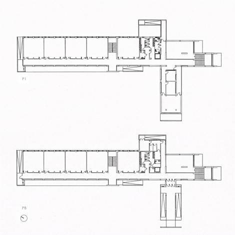 Nos encontramos ante un ejercicio de alta precisión compositiva (el mayor rigor) y de gran potencia expresiva (la mayor libertad). La primera se consigue mediante el uso de un lenguaje claramente moderno y explícitamente neoplástico que la autora homenajea con los “Mondrian” que pintan sus líneas de colores primarios en el vestíbulo de doble altura de la entrada. Se juega con una pieza paralepipédica básica a la que se acomete otra menor y con los planos horizontales de las viseras y verticales de los muros que sobresalen para significar entradas y escaleras. La expresividad está servida de la mano del hormigón visto, la luz y el color que cualifican los generosos espacios.