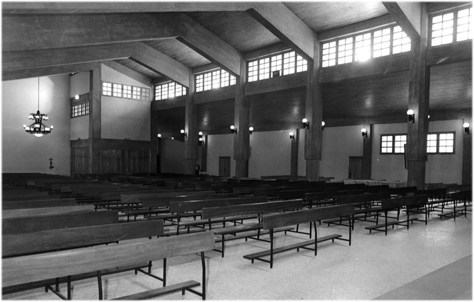 El proyecto se hizo en un nuevo solar situado en una gran avenida del ensanche con accesos y entorno favorable, salvo un conflicto de medianería que condicionó el desarrollo de su planta. Era el año 1963, el cura, un anciano de leyenda que me conmovía en cada visita con su envoltorio de queso y castañas, gratitud maravillosa en su modestia. No vio levantarse el edificio, pero fue para mí emocionante el prodigio de su entusiasmo juvenil ante las audacias que se le proponían en el proyecto: me hizo concebirle con la mayor ilusión y libertad. He de decir que llegué a encariñarme con él: con el cura y con el proyecto.