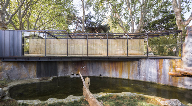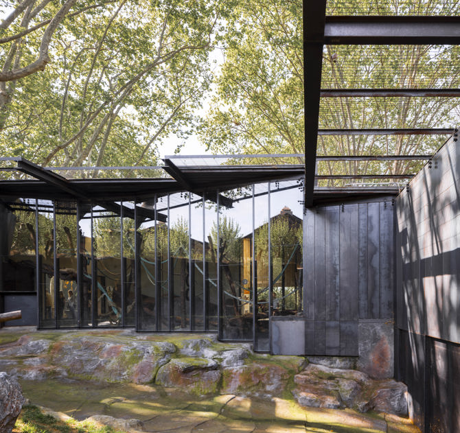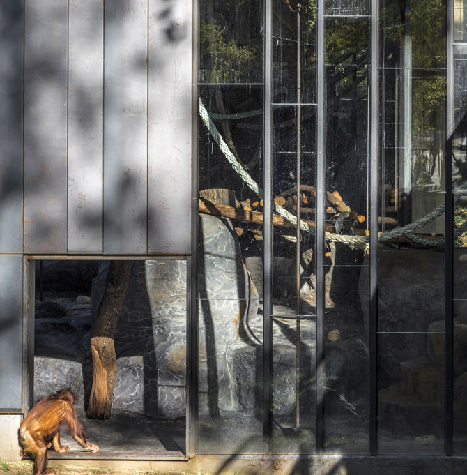 La propuesta contempla un recorrido para el público y cuatro ambientes para los orangutanes: dos espacios climatizados que permiten el resguardo cuando la climatología es adversa, y dos espacios abiertos donde los animales pueden gozar del sol y de un ambiente más natural. Los espacios cerrados disponen de grandes vidrieras que crean un espacio interior cálido y diáfano, y permiten visuales transversales de la instalación y sus habitantes.