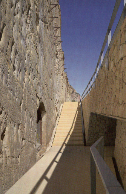 El proyecto surgió como consecuencia de la construcción de la línea 1 del TRAM a su paso por la Serra Grossa, oportunidad para transformar un lugar abandonado en un espacio público, accesible y capaz de poner en valor todos los restos olvidados y rescatar un magnífico patrimonio oculto. En función de esto, el proyecto planteó una plaza arbolada frente a la cantera que acoge el apeadero de la Sangueta y marca el origen del paseo que recorre el intersticio existente entre las vías y el imponente muro pétreo de la montaña.