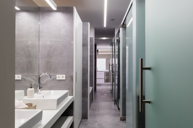 Trasladamos a la cocina otras actividades. En una gran mesa se puede comer, pero también trabajar, hablar, hacer los deberes o leer. Esto permitía mantener a la familia unida haciendo actividades diferentes. La mesa en la cocina está en el origen de la arquitectura tradicional pero también en los cambios de los modos de habitar y en el camino para dejar de contemplar la cocina sólo como una pieza de servicio. De igual modo, en este afán por reconvertir los espacios de servicio, los pasillos dejan de ser solo espacios de paso y se convierten en espacios de almacenamiento de ropa, calzado, libros o juguetes, e incluso de dormitorio convertible en espacio de estar. En ellos hay una continua actividad diaria en el que las cosas de uso cotidiano se guardan o cogen antes o después de llegar del colegio, del trabajo o de la calle. La configuración de los baños en cabinas independientes para inodoros y duchas, permitía el uso del mismo como recorrido alternativo.