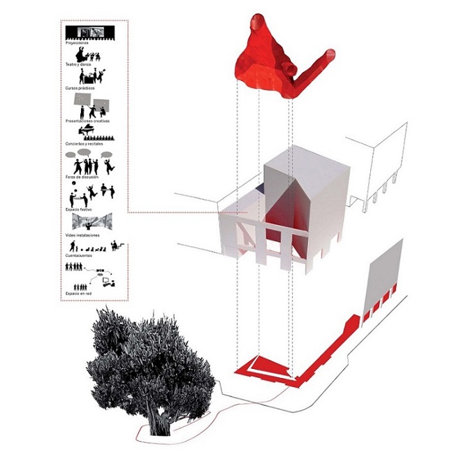 La intervención pretende señalar el carácter estratégico del patio del Colegio de Arquitectos como un lugar que puede ser incorporado a la ciudad. Para ello se modela una habitación escénica roja de fácil instalación que puede ser ocupada como foro ocasional donde celebrar actividades ciudadanas. A través de una página web cualquier individuo o colectivo puede solicitar día y hora y llevar a cabo un evento en un lugar normalmente cerrado fuera del horario institucional; el vestido rojo del espacio lo convierte en un espacio escénico durante el tiempo de la apropiación del mismo. Hubo quince intervenciones ciudadanas dentro de Red Pública en los dos meses que permaneció instalada.