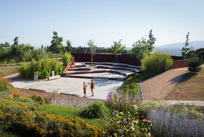 El relieve es variado: hay desniveles de más de 50 m y el conjunto forma un gran anfiteatro orientado al sudoeste y abierto al valle del Llobregat, desde el cual se visualizará el Anillo Olímpico y una gran perspectiva de la ciudad y la Sierra de Collcerola.
