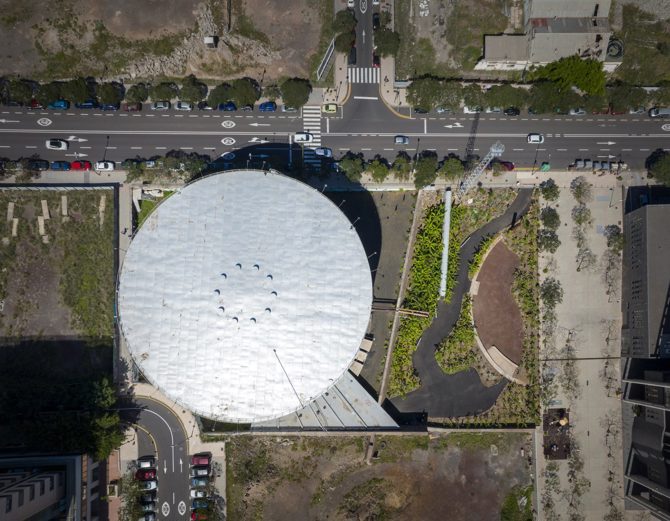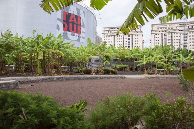 l Jardín del Tanque es la restauración ecológica de una zona industrial protegida que dota al barrio de Cabo Llanos de Santa Cruz de Tenerife de su primer espacio público verde. Alrededor de un antiguo tanque de refinería, reutilizado como espacio cultural desde 1997, y catalogado como Bien de Interés Cultural desde 2014, este huerto de plátanos recuerda el paisaje agrícola anterior a la industrialización, escenificando la ciudad como lugar de convivencia de las diferentes épocas, culturas y sensibilidades que han conformado su identidad.