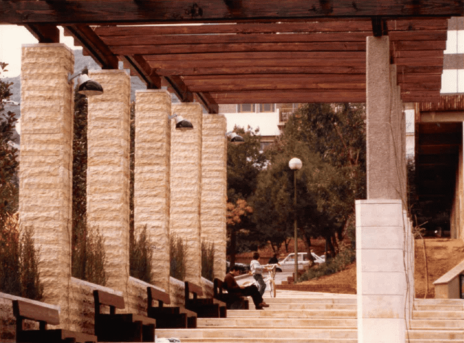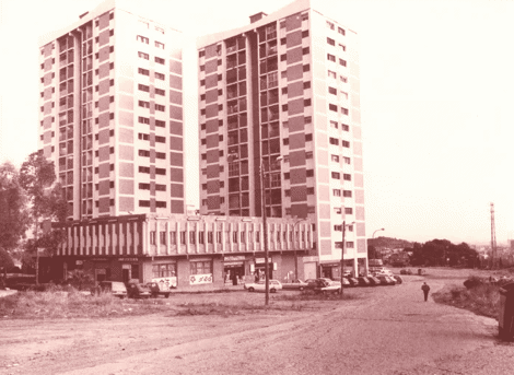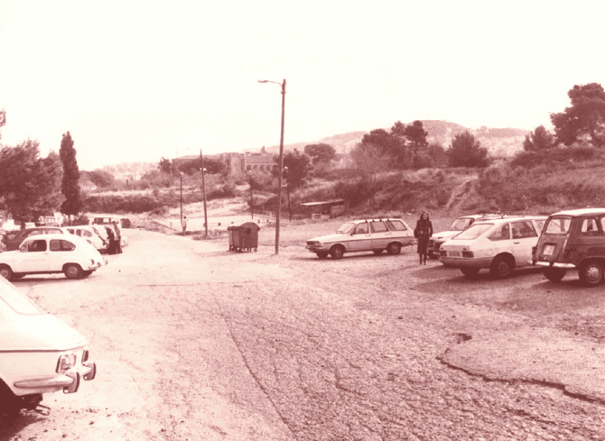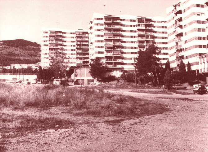 Como en la mayoría de los barrios residenciales de los años sesenta en el extrarradio de Barcelona, en este sector del distrito de Horta solamente se construyeron las viviendas. El proyecto traza y construye la calle Joan de Mena y urbaniza el jardín adyacente.