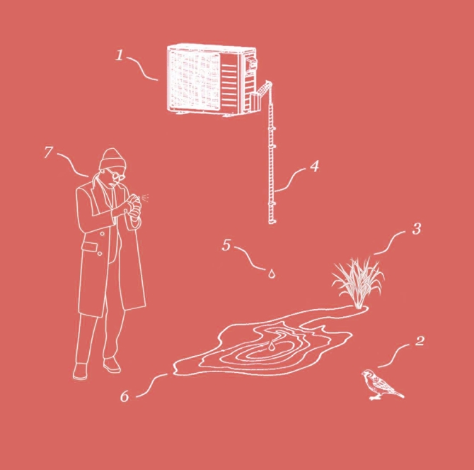 Desde esta perspectiva, se hackean las máquinas a través del prototipo de un bricolaje urbano comunitario destinado a mejorar las condiciones térmicas, energéticas y estéticas de los edificios mediante el uso del agua desechada por las máquinas para crear jardines verticales con especies adaptadas a estas condiciones fomentando un paisaje exterior más fresco, diverso y habitable así como promover el aumento de la biodiversidad, la complejidad y los servicios ecosistémicos de la vegetación urbana a través de acciones ciudadanas participativas.