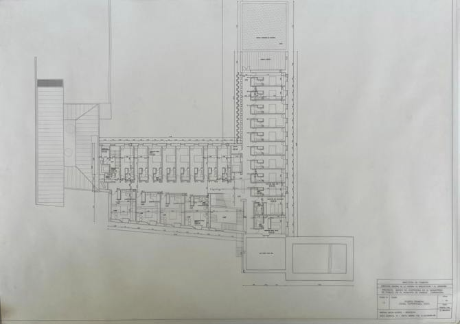 Los monasterios cistercienses albergan históricamente espacios exteriores a la clausura pero interiores al conjunto edificado, destinados al albergue de peregrinos o a los visitantes externos. De esta forma se consolida la relación de la comunidad intramuros con el mundo exterior y sus necesidades. El proyecto busca la consolidación de la plaza de acceso junto a la Puerta Dorada mediante el muro ya existente de la Bossería y la disposición de edificios perpendiculares a este, que se prolongan en muros entre los que se producen jardines, con el fondo norte abierto a las viñas bajas y al paisaje. Además, estos muros encierran –ocultándolos– los aparcamientos y las zonas de servicio.