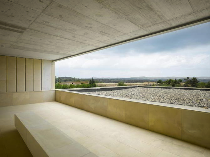 Estructura de hormigón in situ con encofrados de madera de puesta única. El apoyo, en este caso, de un material “intemporal”, como es la piedra, será la garantía del complejo nexo de unión entre lo construido por el hombre a lo largo del tiempo y del espacio en busca de la esencia del construir. El resto nos lo presta la sensibilidad particular con que se ordena el “aire” de Poblet: su luz, su color, sus dimensiones y su clima, que toda construcción comprensiva debe inevitablemente captar.