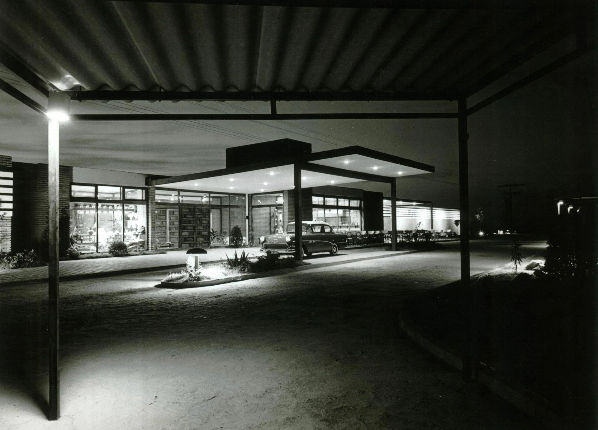 Descanso. Más allá del repostaje, el viaje y la red de carreteras y autopistas movilizó la creación de establecimientos hosteleros y hoteleros en distintas geografías, que servían a turistas y trabajadores, ya fuese para descansar los ojos o pasar la noche. En La Jonquera, a un par de kilómetros de la frontera con Francia, en el margen de la Autopista del Mediterráneo, aún se conserva, rehabilitada, el edificio de equipamientos para el área de servicio proyectada por el estudio estadounidense en el exilio de Josep Lluís Sert, Sert, Jackson & Associates, junto con Josep Zalewski y Jaume Freixa, conocida como la Porta Catalana. De una potente monumentalidad y gravedad, articulada como un gran puente que vuela sobre las vías, a modo de arco, da la bienvenida al país.
