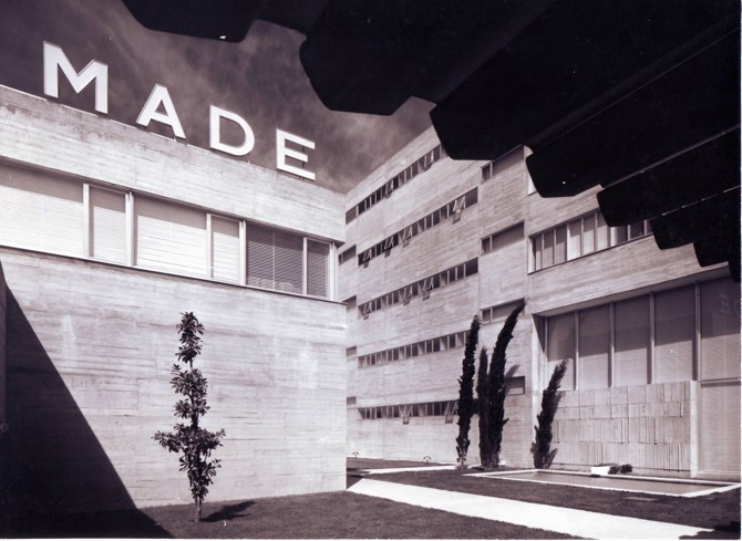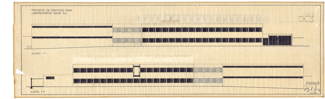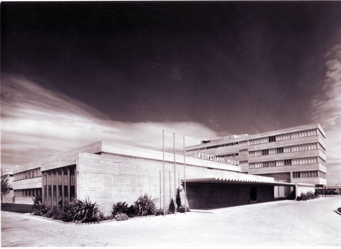En 1961 Miguel Fisac proyectó el edificio de los laboratorios MADE. “Este conjunto de edificios para fabricación de productos farmacéuticos está compuesto de una zona de dirección y administración con despachos, sala de juntas y oficinas; una nave de cálculo y unos pabellones de fabricación que dada la índole especialísima de los productos que han de ser manufacturados, exige, en algunos recintos, instalaciones tales como esterilidad ambiente, acondicionamiento térmico, etc.; unos laboratorios de investigación y control de productos, depósitos de materias primas y productos terminados, cafetería y servicios sociales.