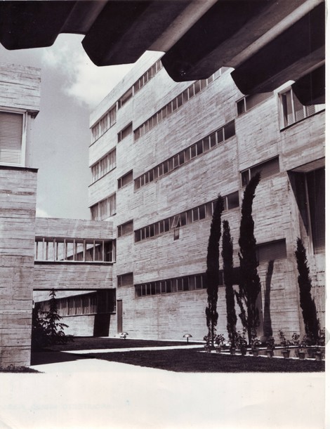 El conjunto del programa se ha estudiado en varios edificios independientes enlazados con pasadizos subterráneos o levados, y tanto su estructura como su disposición se adaptan con todo rigor a las funciones que en ellos se han de realizar... Los edificios están compuestos por una retícula modular que varía según la índole de cada edificio”. Así describe Miguel Fisac el proyecto en la Memoria del mismo.