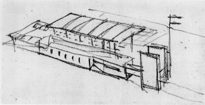 El proyecto pretende entrar en la escala del lugar, por lo cual se dispone como un sistema de mayores o menores contenedores de actividades varias en torno a un cuerpo principal; conjunto que suma y resuelve las necesidades del programa, permitiendo por sus volúmenes, forma, textura y color, entenderse como volúmenes depositados sobre el muelle.