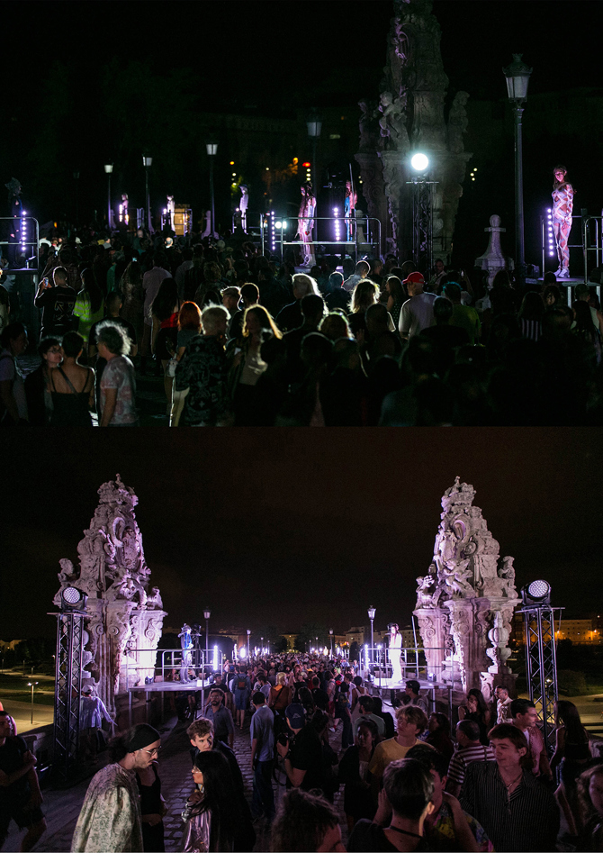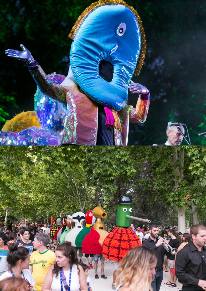 6. Estrategia urbana. En colaboración con el resto del equipo interdisciplinar (dirección artística, responsables de producción, música, públicos, seguridad, iluminación, autoridades municipales, etc.) se define en mesas de trabajo conjunta una estrategia de distribución del festival por el territorio de Madrid. El movimiento a lo largo de la geografía de Madrid se convierte en una suerte de coreografía expandida en el tiempo y el espacio.