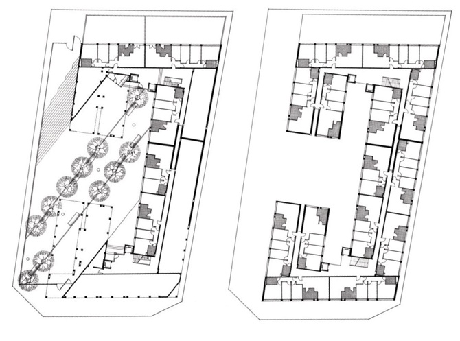 El proyecto se puede ver como un esfuerzo de adaptación del modelo sencillo del bloque a una compleja trama de ciudad mediterránea en la que las esquinas son fundamentales. La relación entre los componentes, pequeños gestos en los testeros y algún cambio en la anchura de los bloques permitieron que la construcción contribuyera a definir las calles circundantes que no eran ortogonales entre sí.