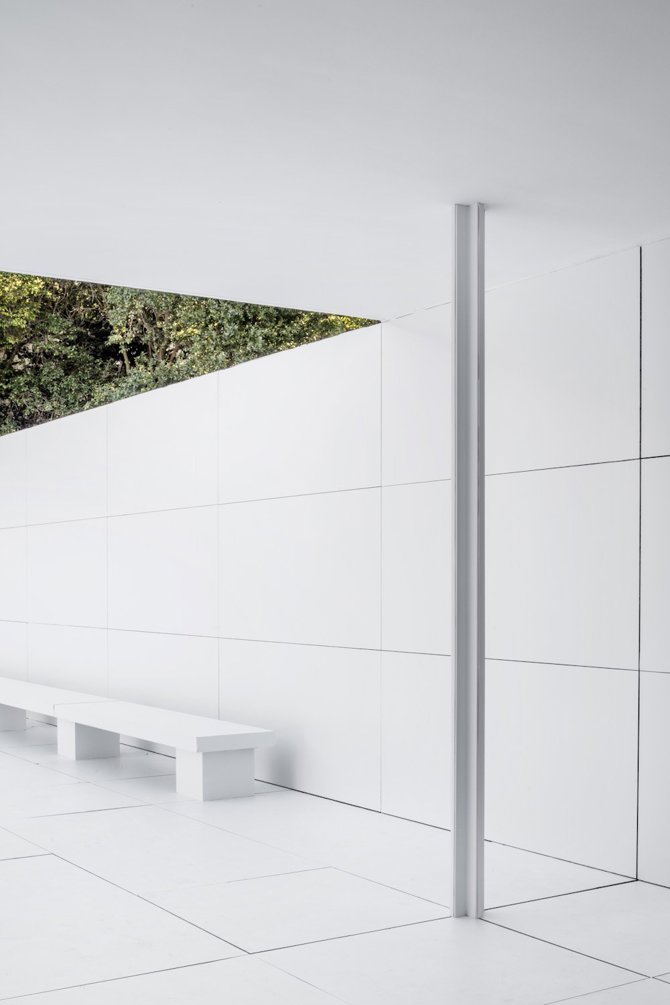 Vestir el Pabellón Mies van der Rohe para desnudarlo de su materialidad. Con esta sencilla acción, el pabellón se convierte en una representación de sí mismo y abre la puerta a múltiples interpretaciones sobre aspectos como el valor del original, el papel de la superficie blanca como imagen de la modernidad o la importancia de la materialidad en la percepción del espacio.