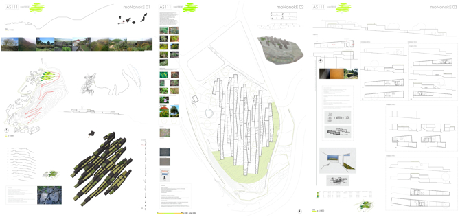 La propuesta se despliega sobre la topografía disponiendo la edificación a lo largo de los dedos de una mano en sentido perpendicular al mar, respetando las escorrentías naturales y la apertura visual. Los senderos actuales se mantienen, dándoles continuidad con los nuevos y aprovechando su cota para ir dando acceso a las diferentes terrazas, que recuperan el zócalo para uso comunitario y potencian la relación panorámica existente. La zona del aljibe y el lagar se rehabilita, dando carácter al espacio público de mayor escala. El espacio entre los edificios resulta cambiante a cada paso y fluye hacia el horizonte. Los alzados de la edificación son silenciosos y dejan al paisaje protagonizar el recorrido. El sistema de agregación surge de dos piezas sesgadas iguales y distintas que se agrupan linealmente.