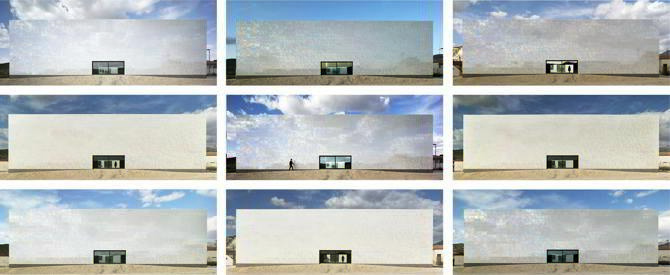 En el antiguo edificio se propone una restauración sin cambios formales, simplemente la recuperación de todos los sistemas de construcción antiguos, pero en color blanco y con diferentes grados de brillo, con la intención de generar una tensión entre lo que el usuario recuerda del edificio y lo que es en la actualidad, y con ello buscamos una sensación entre la extrañeza y la sorpresa, así como la generación de un nuevo tapiz. En cambio, la nueva sala se proyecta como una caja ciega, casi como un elemento extraño en su contexto por sus dimensiones y configuración. Para enfatizar esta sensación se plantea que el cerramiento sea capaz de vibrar y brillar con un material nacarado-irisado.