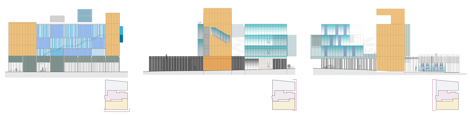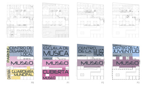 Este edificio, que concentra usos muy diversos, se agrupa en tres paquetes programáticos conectados por patios. Cada uno de ellos funciona tanto de manera independiente como comunicándose entre sí, permitiendo el solape de programas, la comunicación visual y su ocupación temporal.